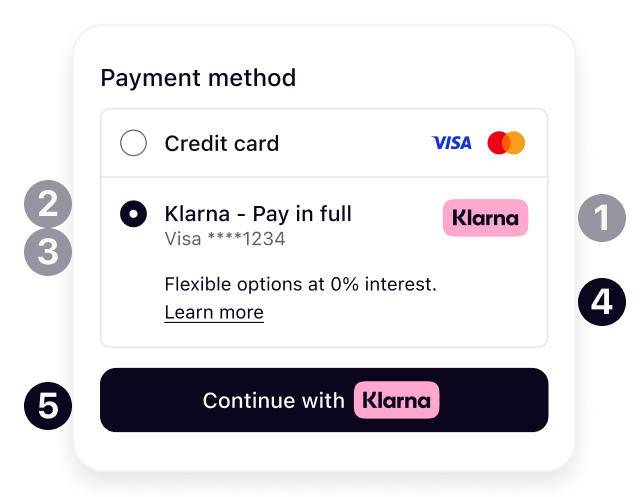 Klarna payment presentation provides all the visual assets, localized texts, and instructions needed to correctly display Klarna in your checkout form.