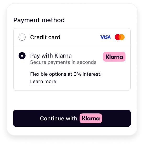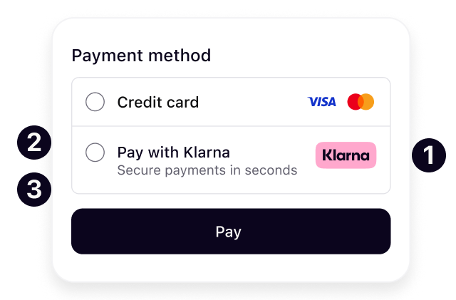 Enable Klarna in payment forms presented through hosted checkout pages or embedded elements using Klarna’s SDKs. This ensures a branded, compliant, and high-conversion checkout experience.