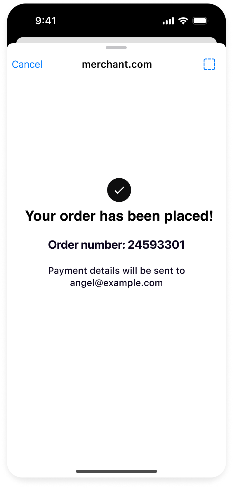 After the purchase is completed, Klarna payment flow will be closed and the customer will be taken back to your checkout page where you will be notified for the authorized session in your web integration. From your checkout or the confirmation page, you can choose to redirect the customer back to your application.