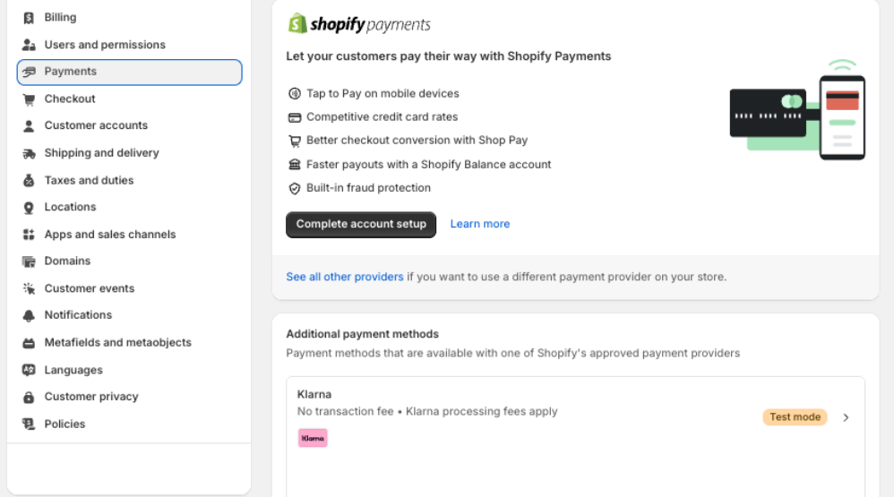 If the Klarna payment method doesn’t display in your checkout, make sure the Klarna payment method is active in your Shopify store admin > Settings > Payments. If the payment method is active, but doesn't display, try the following: